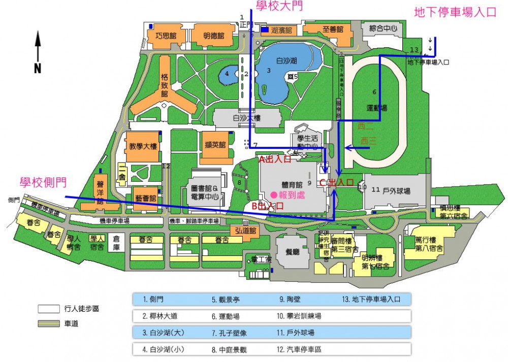 (三)報到地點:國立彰化師範大學(進德校區)體育館1F電梯旁